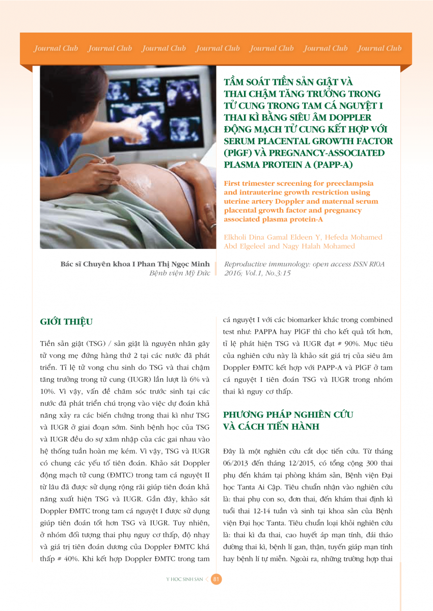 Tầm soát tiền sản giật và thai chậm tăng trưởng trong tử cung trong Tam cá nguyệt I thai kỳ bằng siêu âm Doppler động mạch tử cung kết hợp với Serum Placental Growth Factor (PlGF) và PREGNANCY-ASSOCIATED PLASMA PROTEIN A (PAPP-A) 06/09/2017 73 Lượt xem Từ khóa: Tầm soát tiền sản giật và thai chậm tăng trưởng trong tử cung trong Tam cá nguyệt I thai kỳ bằng siêu âm Doppler động mạch tử cung kết hợp với Serum Placental Growth Factor (PlGF) và PREGNANCY-ASSOCIATED PLASMA PROTEIN A (PAPP-A) Chia sẻ bài viết: Zalo