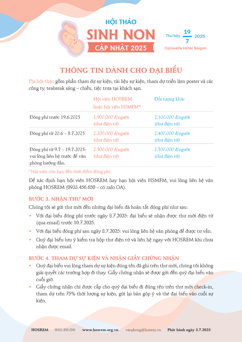 TB II - Hội thảo Sinh non - Cập nhật 2025 03/07/2025 39 Lượt xem Caravelle Hotel Saigon, thứ bảy 19 . 7 . 2025 Thông báo lần III - Hội thảo Sinh non - Cập nhật 2025 Caravelle Hotel Saigon, thứ bảy 19 . 7 . 2025 (bản cập nhật 3 . 7 . 2025) Từ khóa: sinh non2025 Chia sẻ bài viết: Zalo