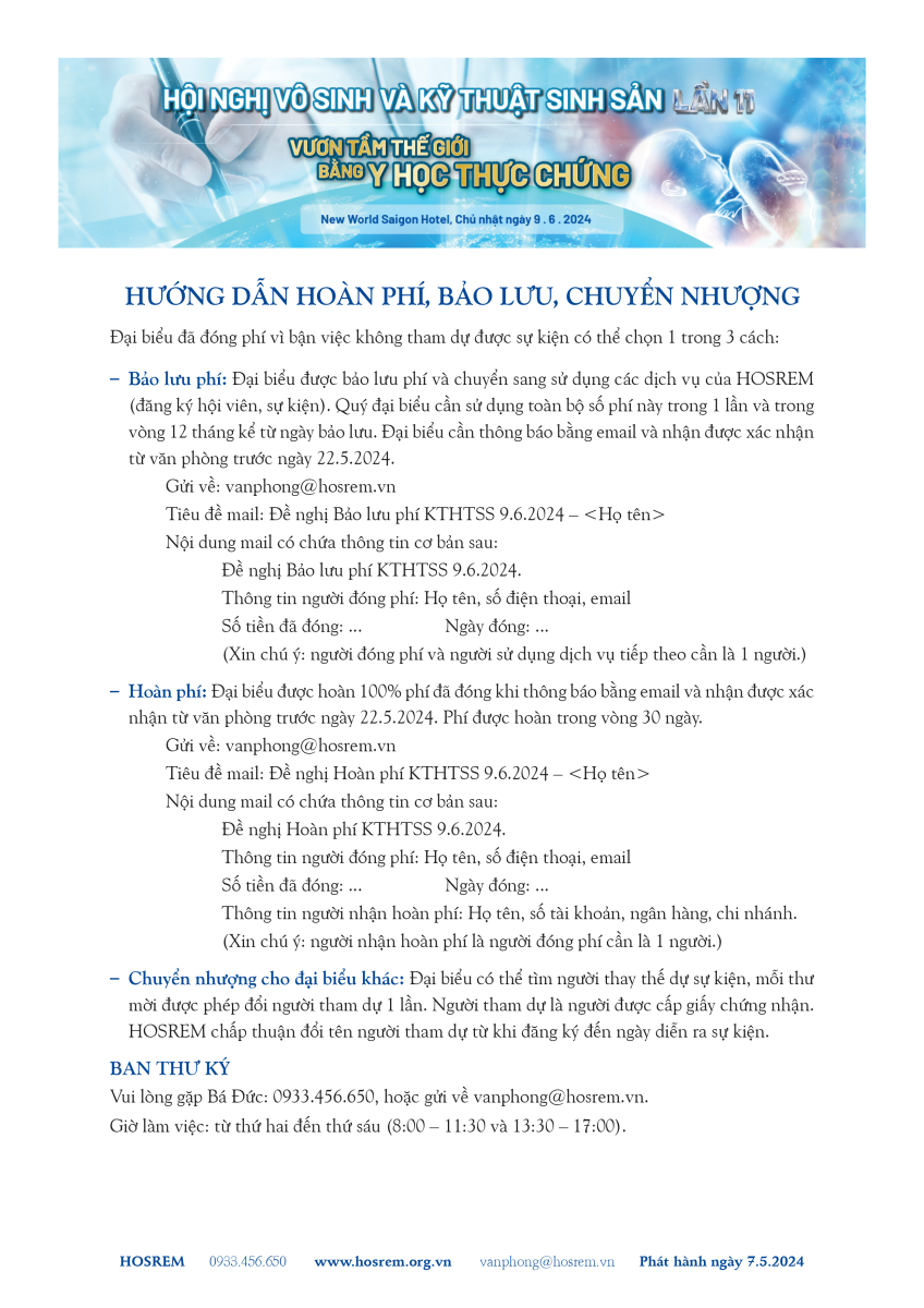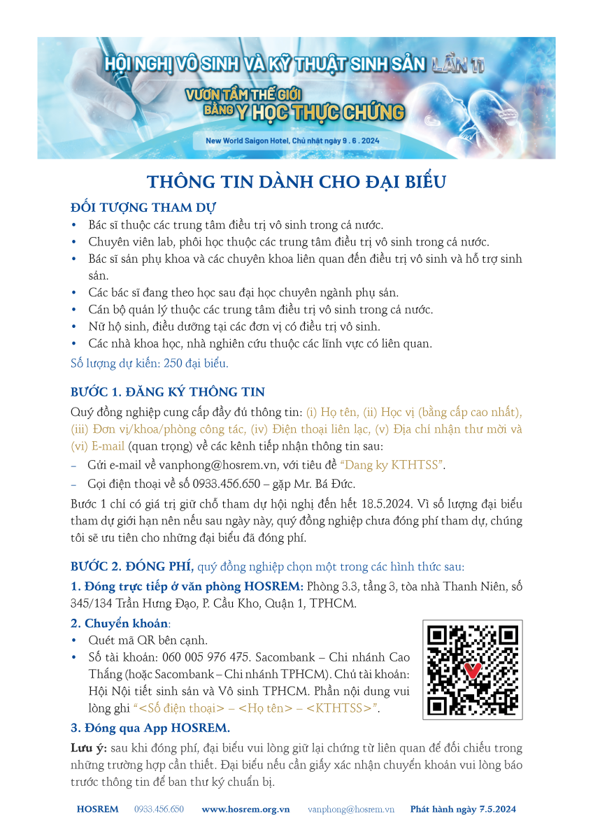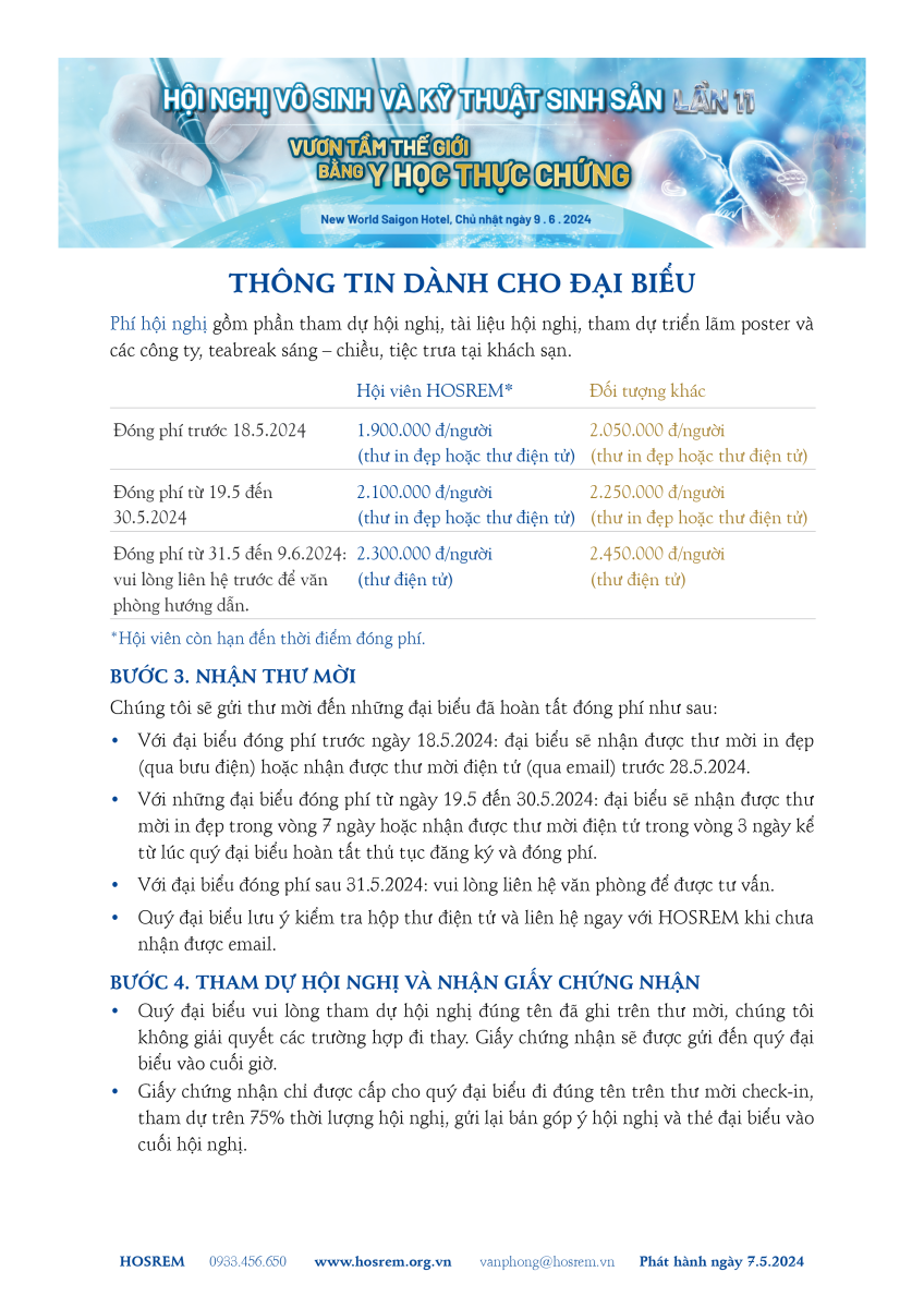 Vì sức chứa hội trường có giới hạn, ban tổ chức tạm ngưng nhận đại biểu từ ngày 24.5.2024. Chân thành xin lỗi nếu làm phiền quý đồng nghiệp.