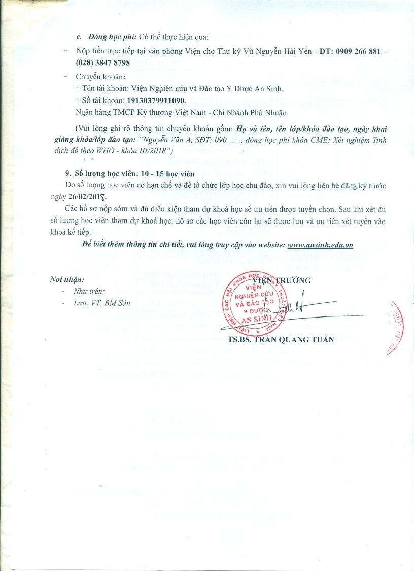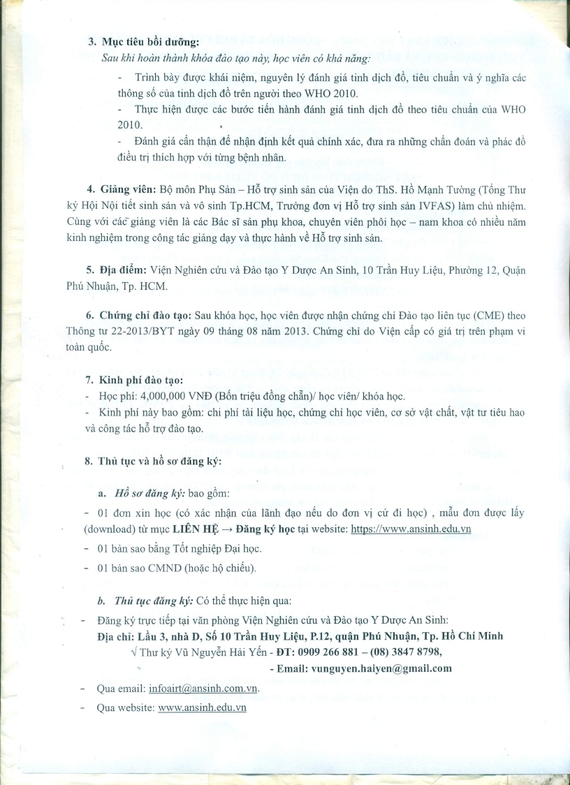 Thông báo chiêu sinh lớp đào tạo Y khoa liên tục "Xét nghiệm tinh dịch đồ theo WHO 2010" 12/02/2018 59 Lượt xem Thông báo chiêu sinh lớp đào tạo Y khoa liên tục "Xét nghiệm tinh dịch đồ theo WHO 2010" Từ khóa: Thông báo chiêu sinh lớp đào tạo Y khoa liên tục "Xét nghiệm tinh dịch đồ theo WHO 2010" Chia sẻ bài viết: Zalo