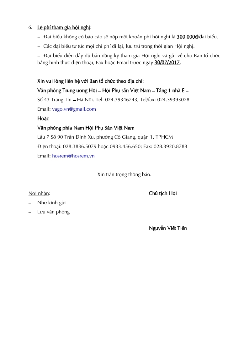 Thông báo Hội nghị Sản Phụ khoa Toàn Quốc 22/9/2017