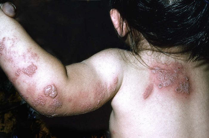 Hình 3. Bé gái 14 tháng tuổi với các tổn thương da do herpes zoster.