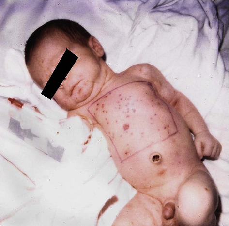 Hình 4. Bé sơ sinh với thủy đậu mắc phải từ mẹ lúc sinh