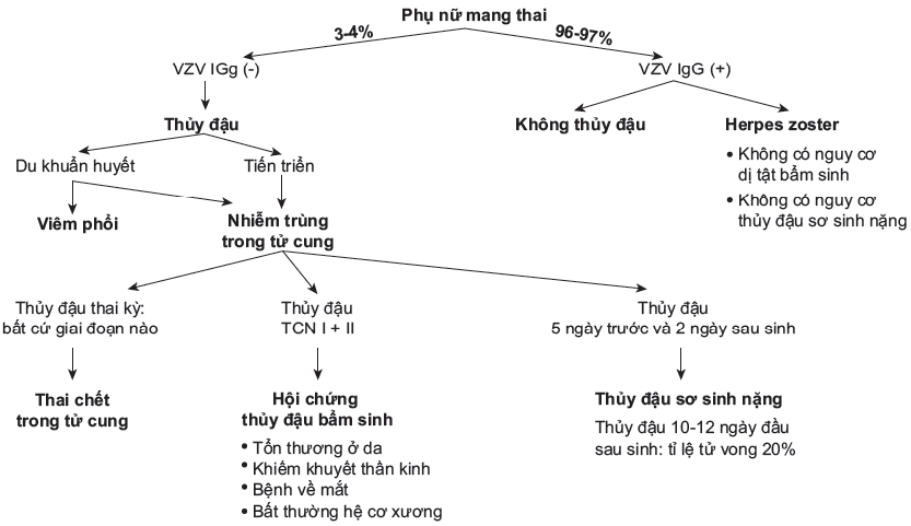 Sơ đồ 1. Nhiễm trùng VZV và những hậu quả trong thai kỳ (Sauerbrei và Wutzler, 2007)
