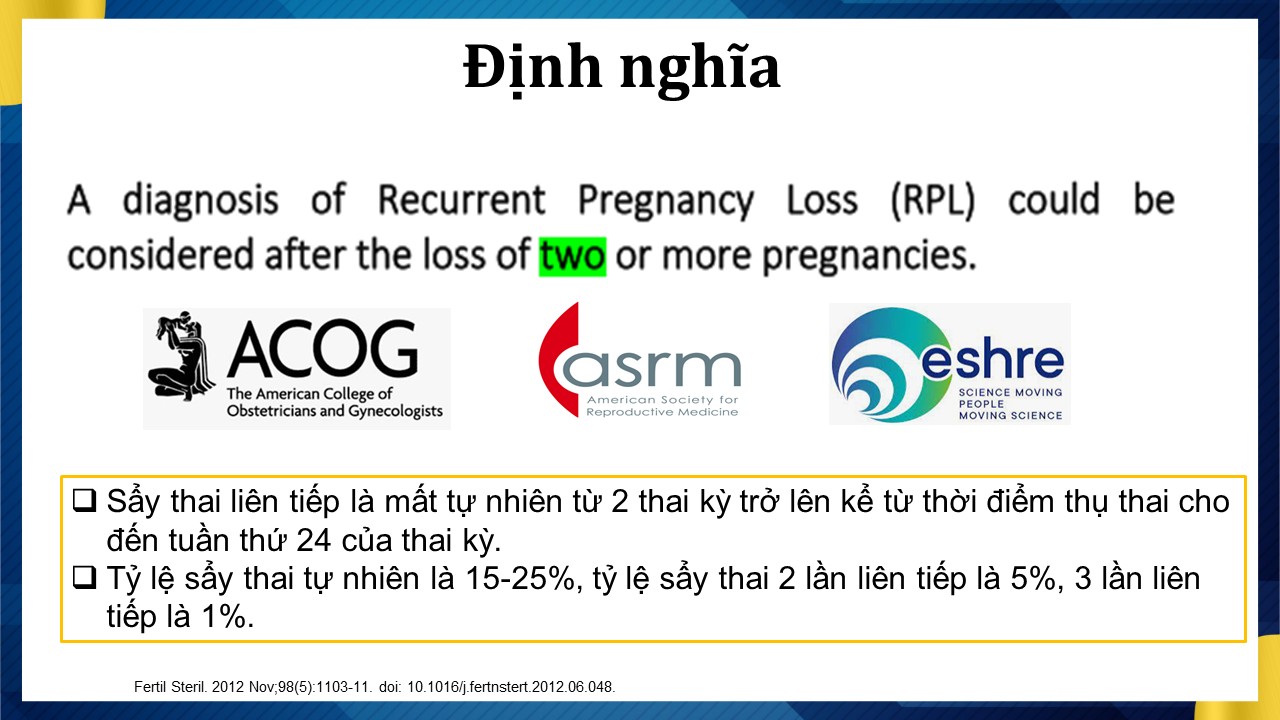 Tiếp cận mới chẩn đoán và điều trị : Sẩy thai liên tiếp