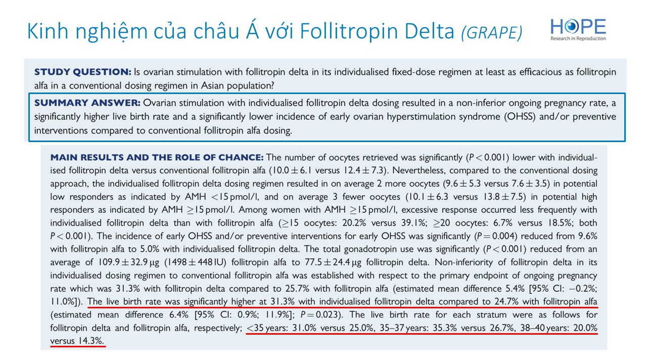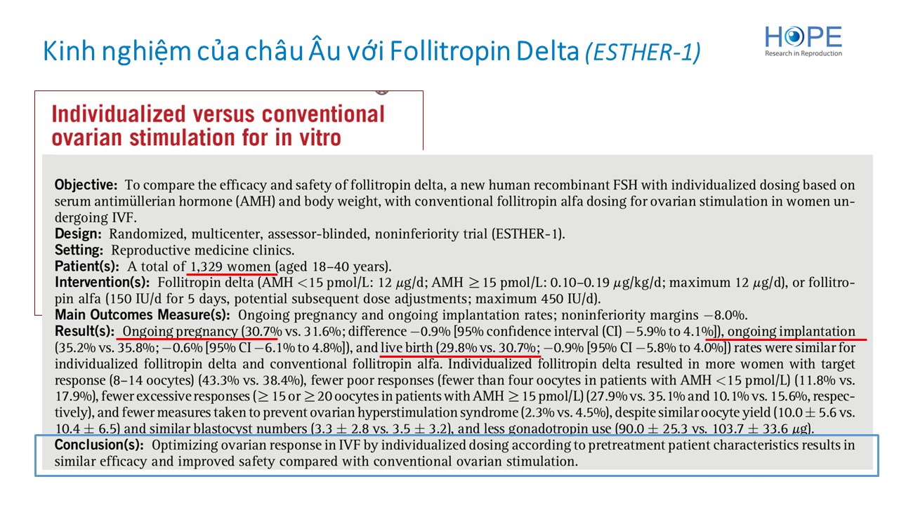 Tối ưu hoá điều trị với Follitropin Deltavà bằng chứng thế giới thực (Real Vietnam Evidence)
