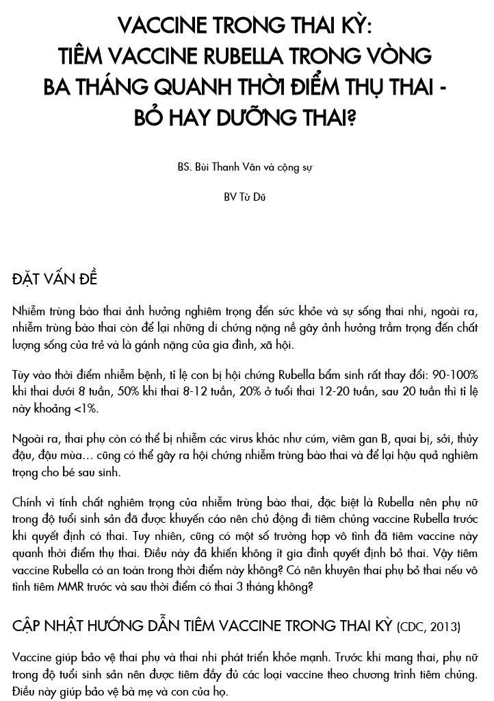Vaccine trong thai kỳ: tiêm vaccine Rubella trong vòng ba tháng quanh thời điểm thụ thai - bỏ hay dưỡng thai? 11/03/2016 42 Lượt xem BS. Bùi Thanh Vân và cộng sự BV Từ Dũ Từ khóa: Vaccine trong thai kỳ: tiêm vaccine Rubella trong vòng ba tháng quanh thời điểm thụ thai - bỏ hay dưỡng thai? Chia sẻ bài viết: Zalo