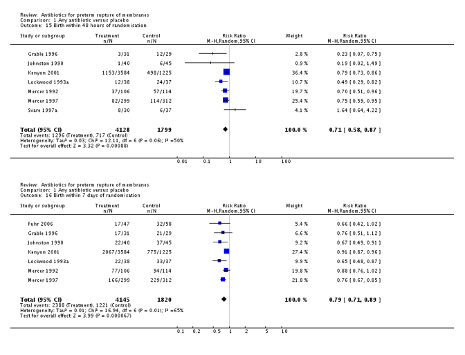 Kenyon S, Boulvain M, Neilson JP. Antibiotics for pre- term rupture of membranes. Cochrane Database of Systematic Reviews 2010, Issue 8. Art. No.: CD001058. DOI: 10.1002/14651858.CD001058.pub2.