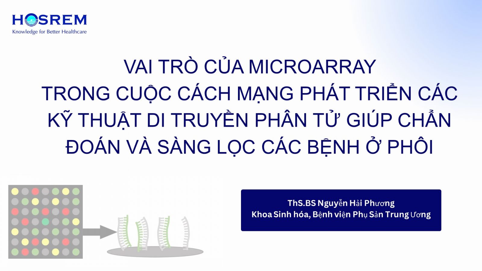 Vai trò của microarray trong cuộc cách mạng phát triển các kỹ thuật di truyền phân tử giúp chẩn đoán và sàng lọc các bệnh ở phôi 18/03/2024 17 Lượt xem ThS.BS Nguyễn Hải Phương - Khoa Sinh hóa, Bệnh viện Phụ Sản Trung Ương Từ khóa: Vai trò của microarray trong cuộc cách mạng phát triển các kỹ thuật di truyền phân tử giúp chẩn đoán và sàng lọc các bệnh ở phôi Chia sẻ bài viết: Zalo