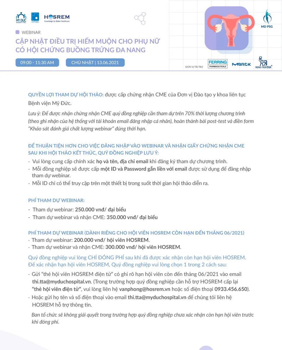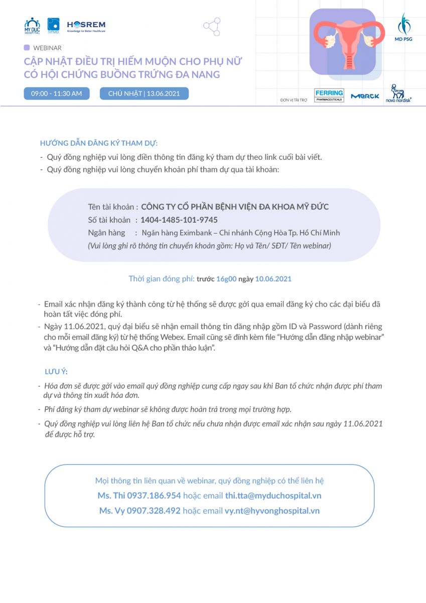 Quý đồng nghiệp vui lòng liên hệ bệnh viện Mỹ Đức để đăng ký và hỗ trợ các thông tin về webinar: