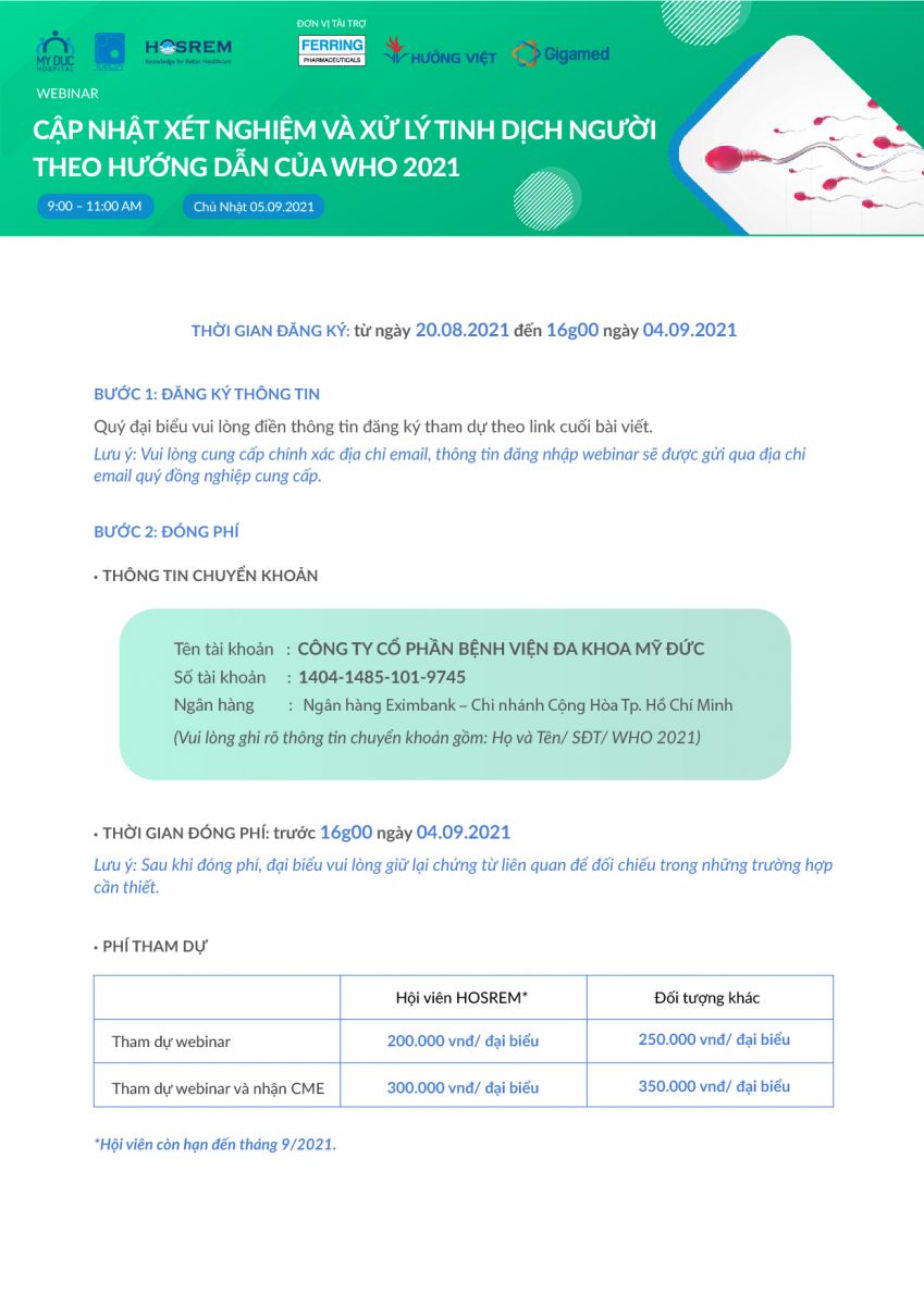 Quý đồng nghiệp đóng phí tham dự webinar vui lòng chuyển khoản về bệnh viện Mỹ Đức: