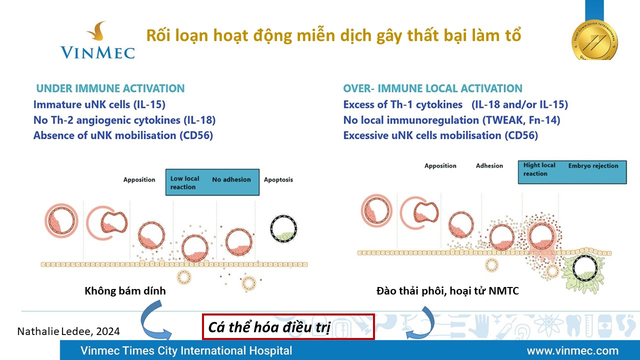 Yếu tố miễn dịch nào liên quan đến thất bại làm tổ